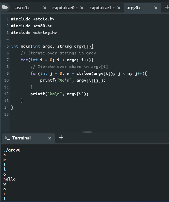 Linking – linking step links all the imported files, stdio.h + cs50.h + yourfile.h.