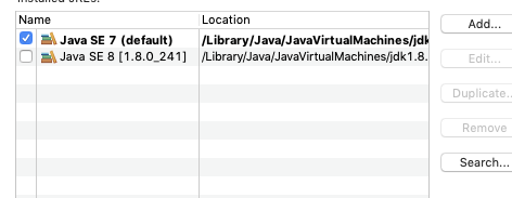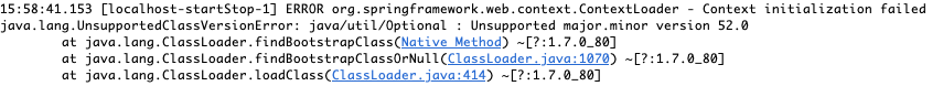 mysql-connector 버전 8 이후 부터는 java 7를 지원안해준다.